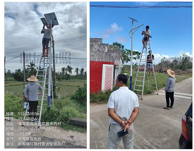 2024年9月受臺風“摩羯”影響,海南省文昌市遭受了前所未有的自然災害。2024年年10月16日,廣州市臺電舞臺燈光設備有限公司承接的由廣東省文昌聯誼會集體捐贈的太陽能路燈順利抵達海南文昌各村,并由廣州臺電技術人員的指導下陸續安裝完成。本次太陽能路燈受到當地各級政府單位一致好評。